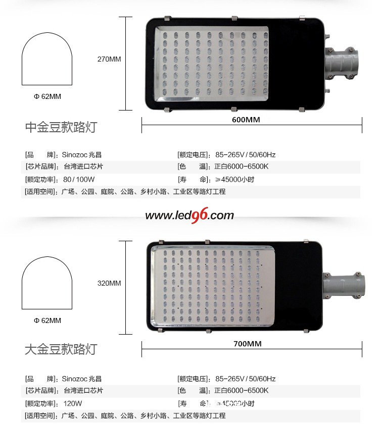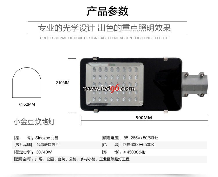 編號:金豆SWL013 功率:LEDLED 光源:30w/40w/80w/100w/120w 類別:路燈 適用場所: 我要留言?將產品收藏 |